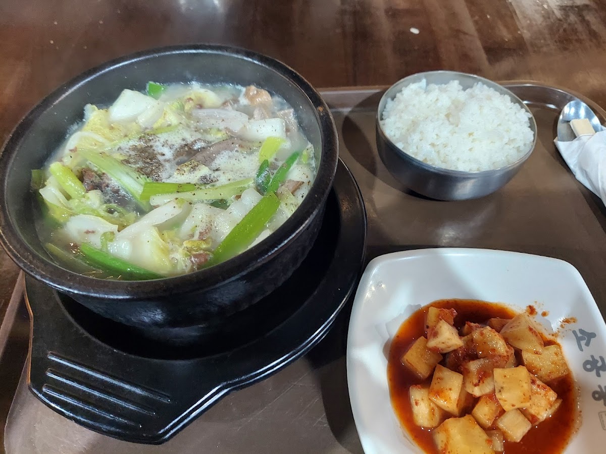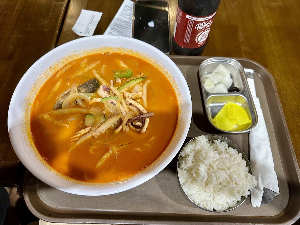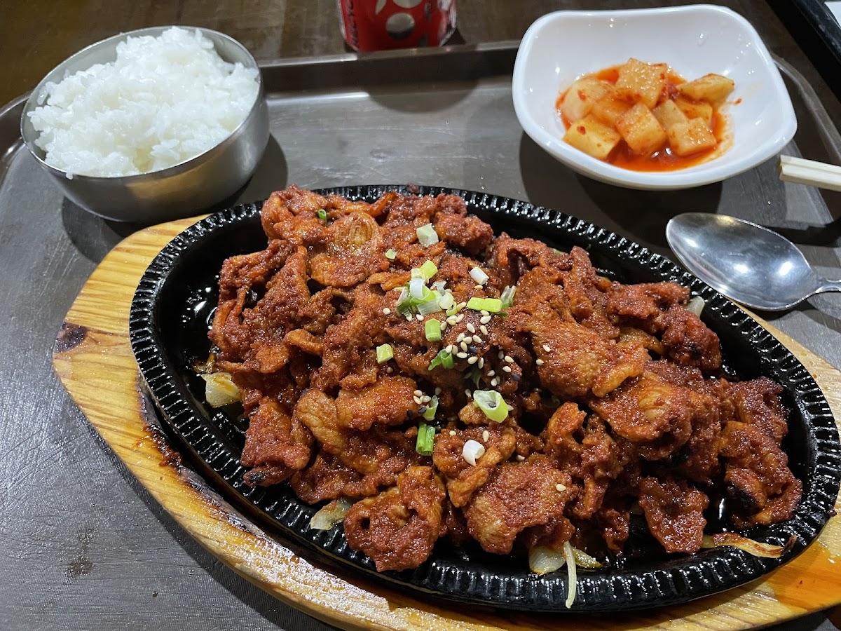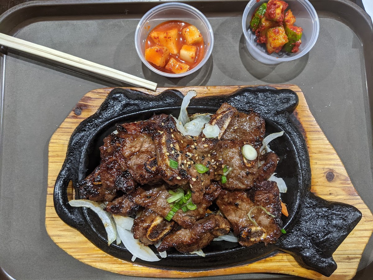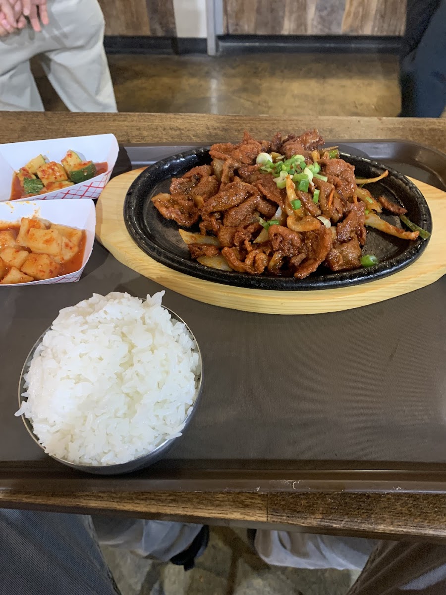 “ one of the few places I know that does a beef Hot stone bowl ! they served with it a small serving of radish kimchi overall was happy and would come back order took less than 10 minutes my way of eating a hot stone bowl is leaving it to sit and make the rice crunchy if you didn't know, it's inside hmart, the last restaurant by the water cooler ”